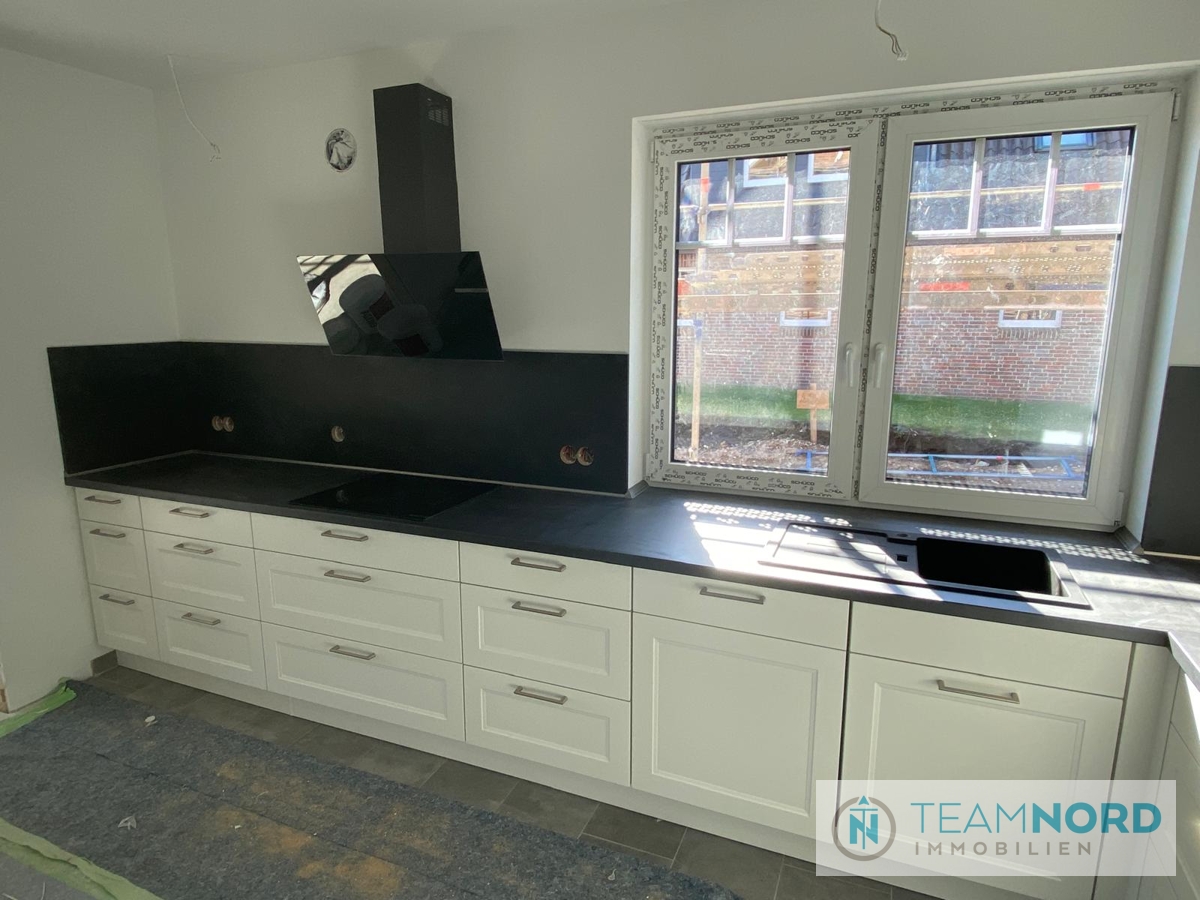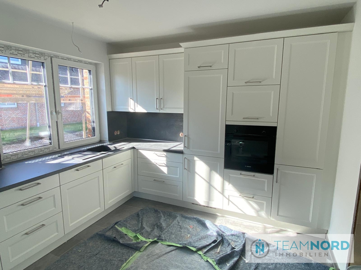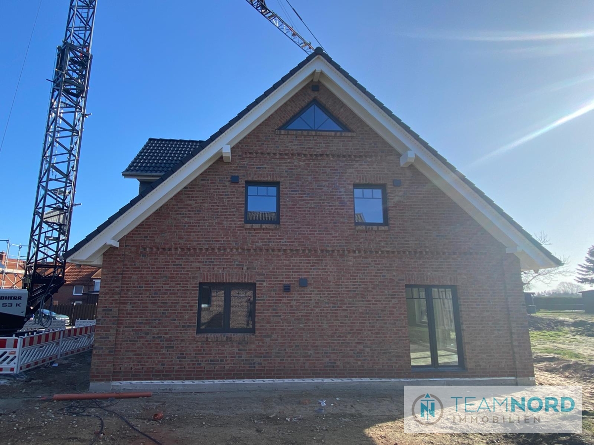 Zur Ausstattung gehören unter anderem Fußbodenheizung, dreifach verglaste Fenster, elektrische Außenrollläden, Designboden in den Wohn- und Schlafräumen sowie Fliesen in Küche, Hauswirtschaftsraum, Flur im Erdgeschoss und Bädern. Die Fassade aus Klinker, der Kapitänsgiebel auf der Eingangsseite und die großzügigen Gauben geben dem Haus eine moderne, aber angenehm wohnliche Ausstrahlung.