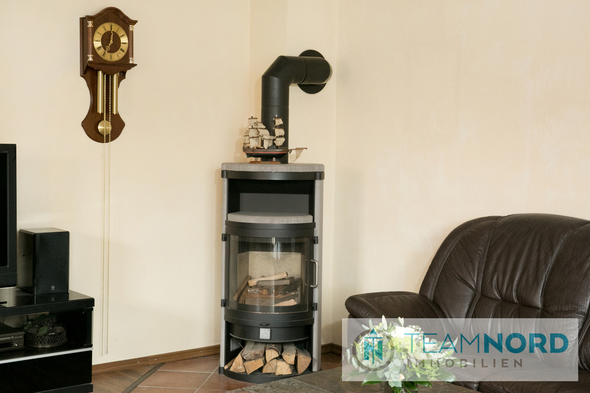 Beim Betreten des Hauses erwartet Sie ein praktischer Flur, von dem Sie in die verschiedene Bereiche gelangen. Gleich vorn befindet sich die moderne Küche, welche mit ausreichend Platz für einen gemütlichen Essbereich punktet. Direkt gegenüber erreichen Sie das großzügige Wohnzimmer, welches ebenfalls Platz für einen Essbereich bietet. Für wohlige Wärme und gemütliche Stunden im Winter sorgt ein Kamin, und für den Sommer ist die zur südwestlich ausgerichteten Terrasse, welche Sie vom Wohnzimmer erreichen, vorgesehen. Dieser Außenbereich ist ideal für entspannte Abende im Freien oder gemütliche Zusammenkünfte mit Familie und Freunden.
