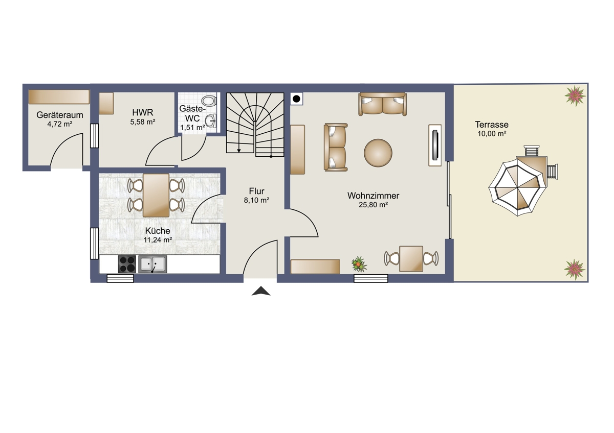 Weiter befindet sich im Erdgeschoss ein Gäste-WC und ein HWR.