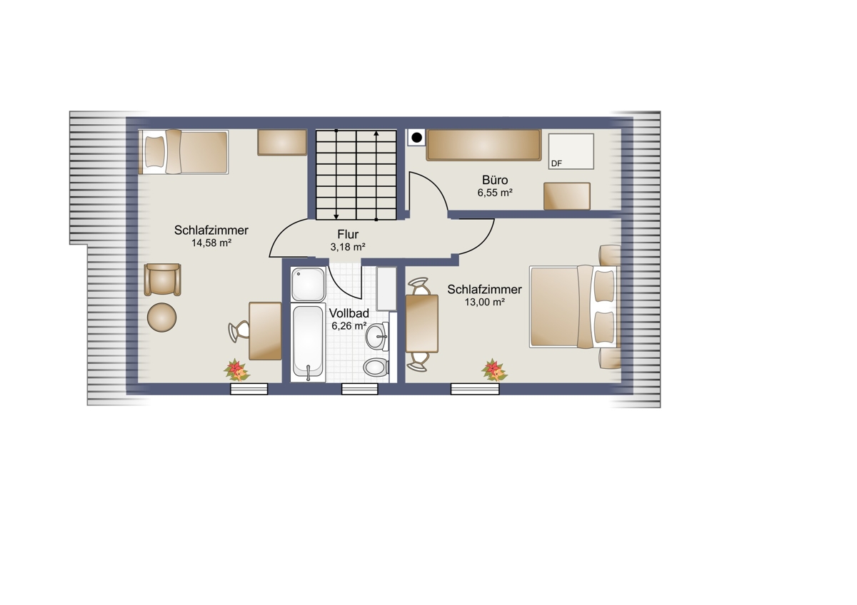Doch damit nicht genug! Das ausgebaute Dachgeschoss bietet zusätzlichen Wohnraum oder Raum für Hobbys und Freizeitaktivitäten. Hier können Sie Ihrer Kreativität freien Lauf lassen und den Raum ganz nach Ihren Vorstellungen gestalten.
