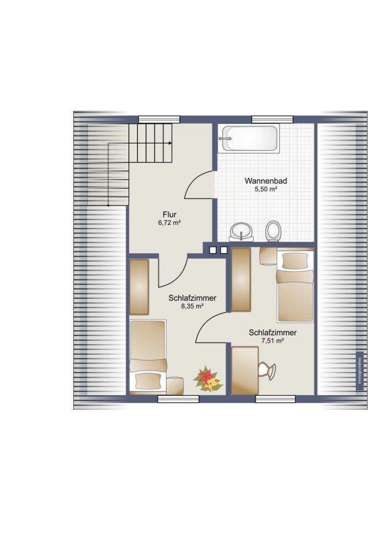 Noch mehr Gemütlichkeit erwartet Sie im Dachgeschoss. Über eine Holztreppe mit Plateau erreichen Sie diesen Bereich. Hier stehen Ihnen zwei Schlafzimmer zur Verfügung, ideal für Kinder oder als Schlafzimmer und Ankleide. Ein modernes Wannenbad mit Fenster rundet das Stockwerk ab. Das Highlight ist der ausgebaute Dachboden, der mit zwei Dachfenstern und einem Heizkörper einen perfekten Rückzugsort bietet. Mit einer platzsparenden Wendeltreppe lässt sich dieser Raum als weiteres Zimmer nutzen.