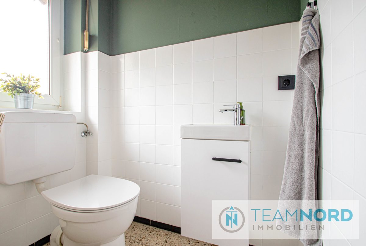 Der überdachte Eingangsbereich führt Sie direkt in den zentralen Flur. Von hier aus sind alle Bereiche des Hauses gut erreichbar – ideal für den Familienalltag. Ein gepflegtes Gäste-WC direkt im Eingangsbereich heißt Ihre Besucher stilvoll willkommen.